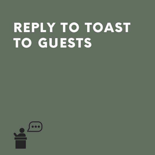 As the nominated speaker who has to reply to toast to guests you will want to express your gratitude and that of your fellow guests for the hospitality you have received. You will speak about the warmth of the reception, the generosity of your hosts and your pleasure at joining them at this wonderful event.
